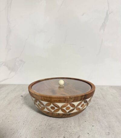 סט צלחות נחושת – 3 חלקים עם מכסה עץ