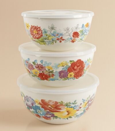 מוצר סט 3 קערות Floral Burst – אדום, תכלת וצהוב