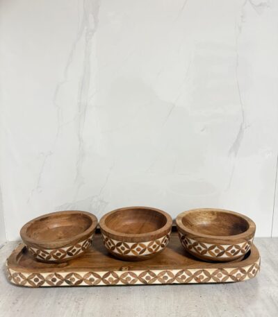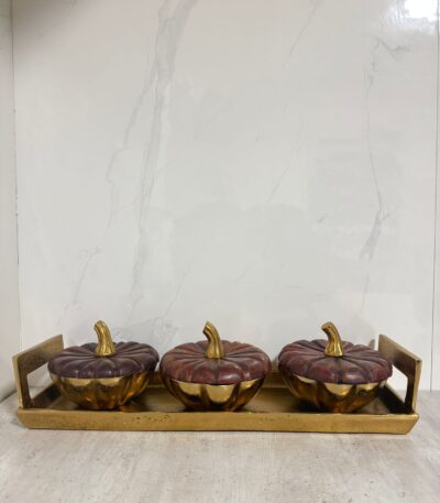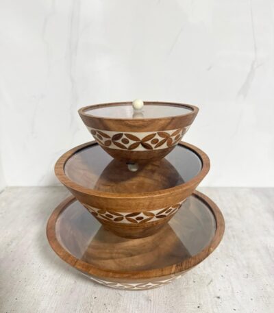 סט צלחות נחושת – 3 חלקים עם מכסה עץ