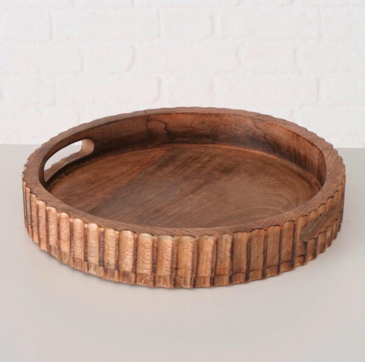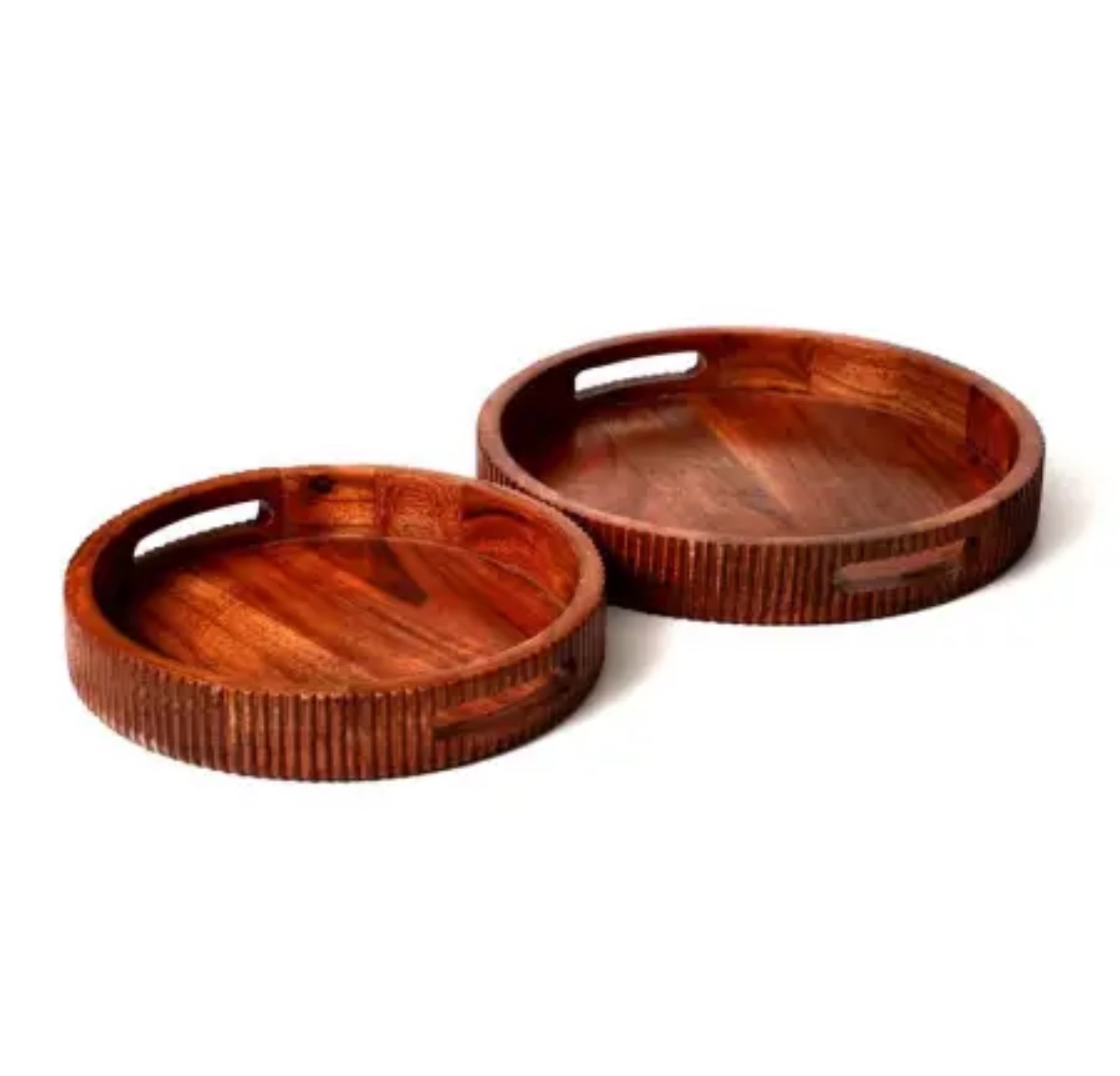 מגשי אירוח בקוטר 30 ס״מ ו-32 ס״מ עשויים מעץ במבוק איכותי. עיצוב יוקרתי ומראה טבעי שמוסיף חמימות לכל שולחן. מושלמים להגשה אלגנטית ולשימוש יומיומי