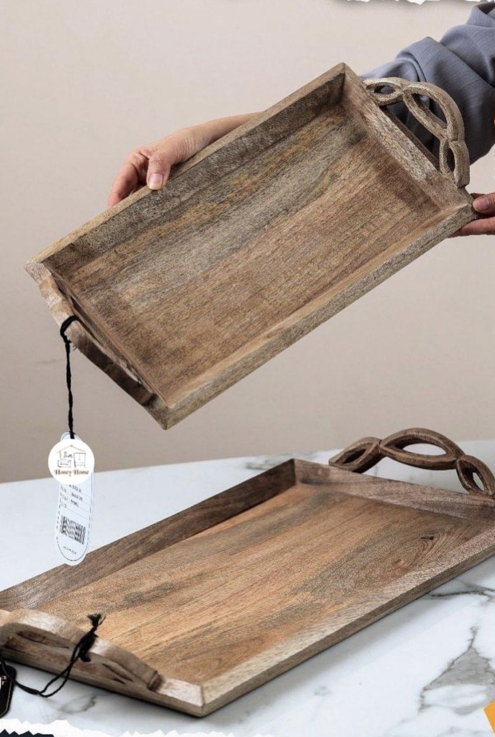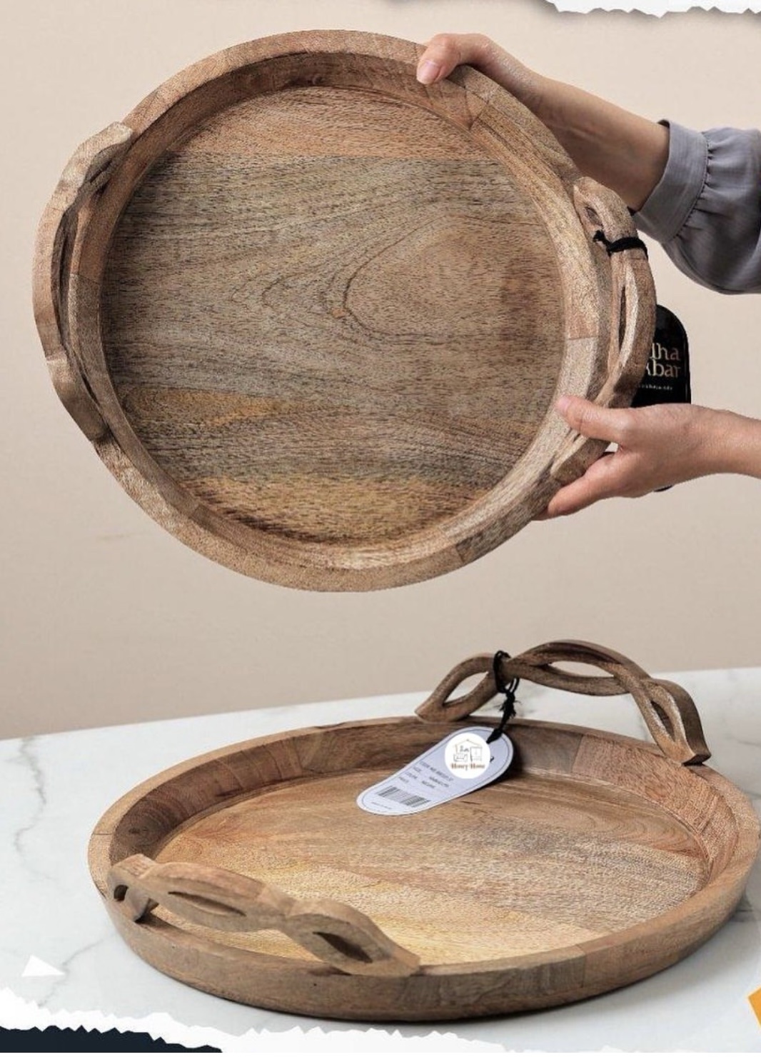 מגשי הגשה מעץ יוקרתי, זמינים בצורת עיגול ובצורת מלבן. הסט כולל שתי יחידות ומוסיף נגיעה אלגנטית ומרשימה לכל אירוח