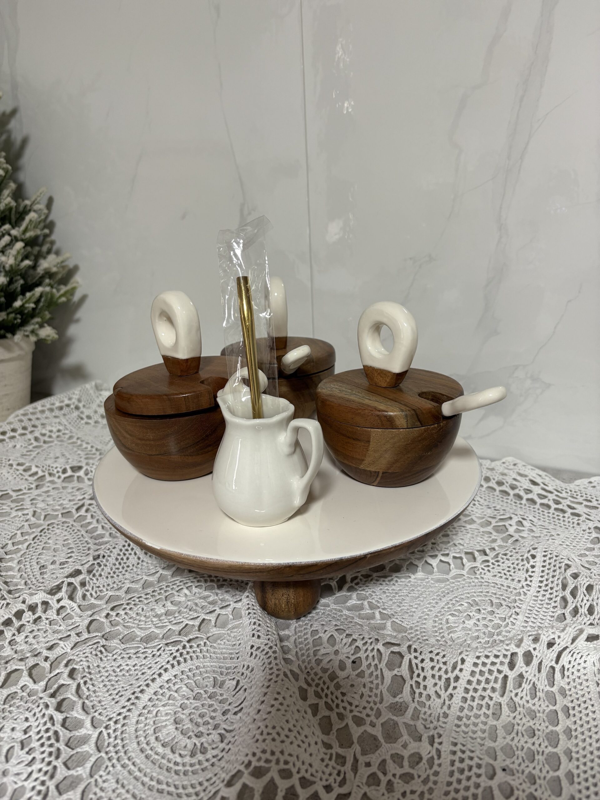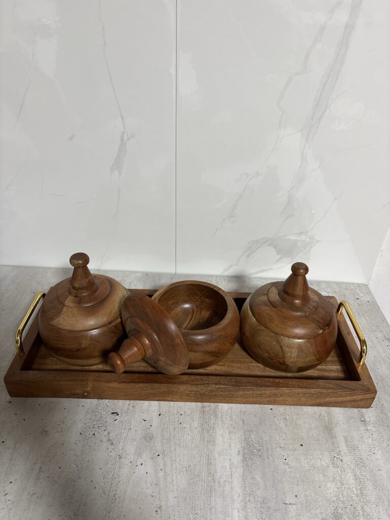 השילוב בין החומרים יוצר מראה חמים, נקי ומלא בסטייל – מושלם להגשה או כפריט דקורטיבי למטבח ולסלון.