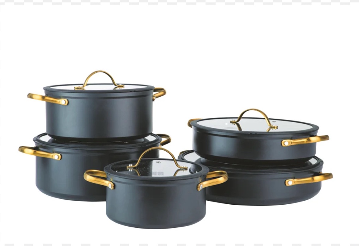 סט סירים גרניט מקורי עם מכסה זכוכית ושוליים מגומי המונעים נזילת נוזלים בזמן הבישול. ידיות מנחושת מוזהבת, מראה יוקרתי ועמידות גבוהה. הציפוי הגרניט אינו נדבק ומבטיח בישול נוח וקל לניקוי. הסט כולל 4 חלקים: סיר גדול בקוטר 32 ס״מ, מחבת 28 ס״מ, סיר 26 ס״מ וסיר 24 ס״מ. מושלם לכל מטבח
