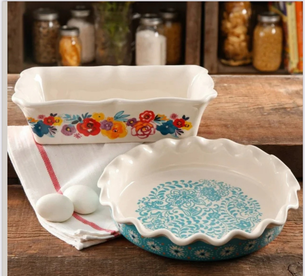 סט של שתי תבניות פאי עשויות קרמיקה איכותית, עמידות בחום וניתנות להכנסה לתנור.