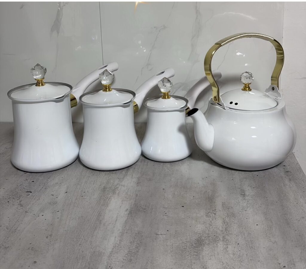 קומקום אמייל איכותי בגודל בינוני, בנפח 0.7 ליטר. עשוי אמייל עמיד לשימוש יומיומי, שומר על חום המים ומבטיח חוויית הכנה נוחה ובטוחה.